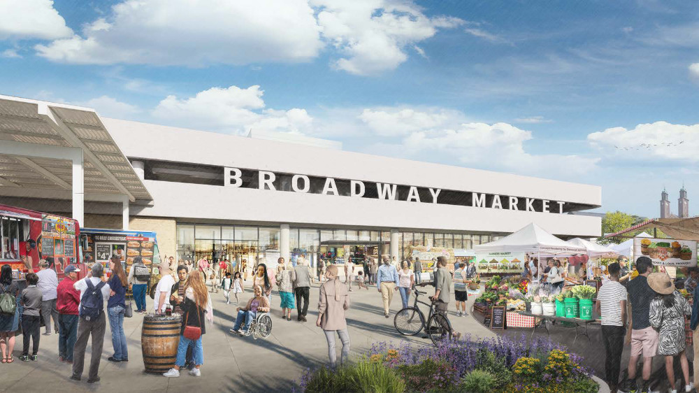 Empire State Development (ESD) today provided a project update on next steps for construction that will begin transforming Buffalo’s Broadway Market into a sustainable and vibrant year-round food and shopping hub. Broadway Market Management, Inc. (BMMI), a new not-for-profit corporation, has been established, in coordination with ESD, to operate the city-owned public market building, and is on track to go before the City of Buffalo Preservation Board for a certificate of appropriateness for the rehabilitation of the market. The Buffalo Planning Board will next consider site plan approval for the project, which is set to begin construction in the summer of 2026, at an estimated cost of between $40-45 million. Capital funding for the renovation is from Empire State Development and operations support for BMMI is funded by the Regional Revitalization Partnership (RRP), a multi-year $300 million collaborative initiative between New York State’s Empire State Development, local municipalities and private philanthropic partners. Downtown Revitalization Initiative funds, provided by NYS Department of State, are also included in the capital funding for Broadway Fillmore.
